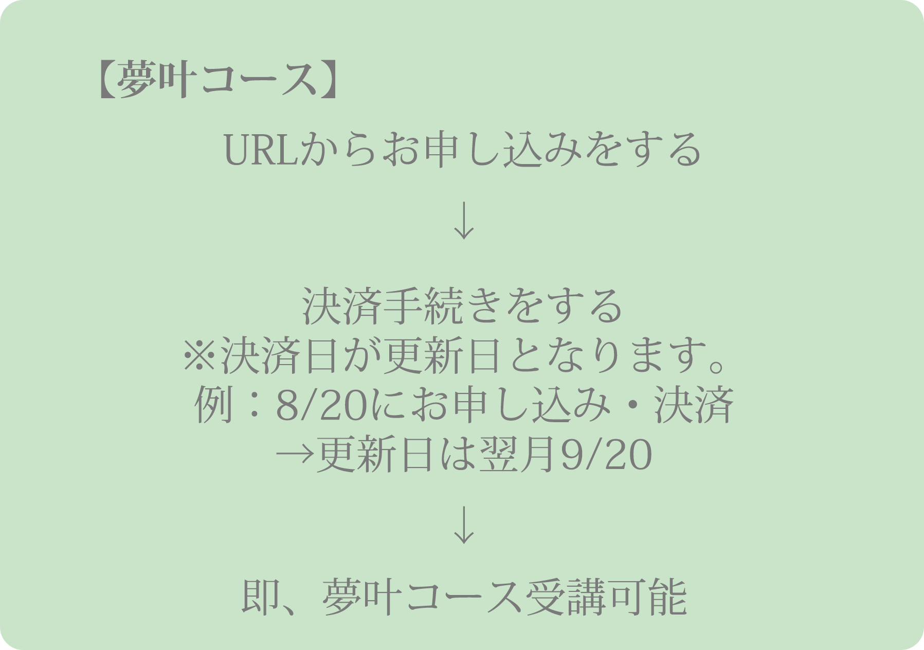※夢叶コース:申し込み日から受講可能